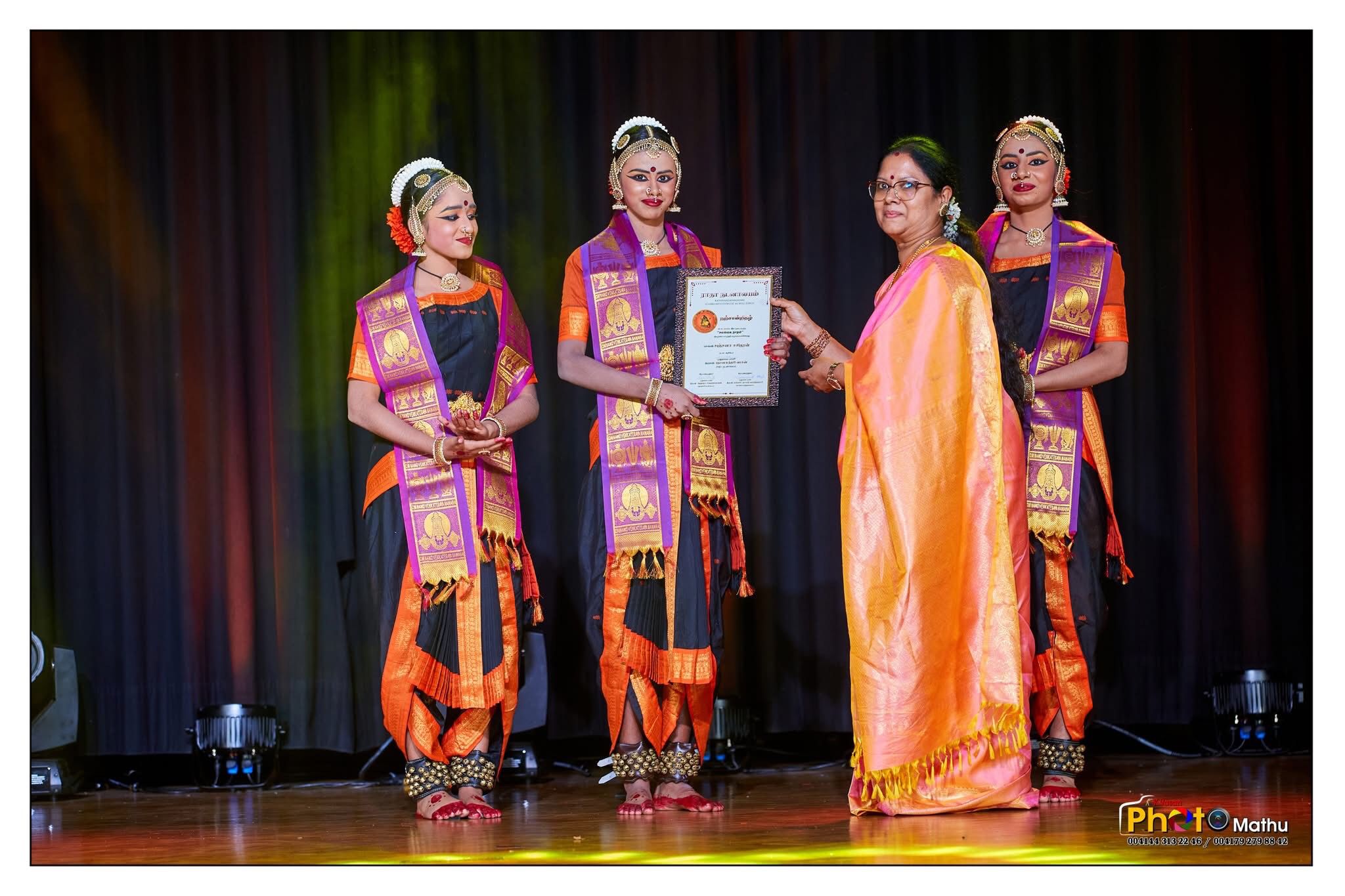 அகவணக்கத்தினைத் தொடர்ந்து ஆசியுரையினை முனைவர் சோமஸ்கந்த சர்மா நிகழ்த்தினர். வரவேற்புரையினை திரு.சசிகரன் நிகழ்த்தினார். தொடர்ந்து அரங்கில் செல்வி சமீரா முரளிதரன், செல்வி.மஞ்சரி சசிகரன், செல்வி சஞ்சனா சசிகரன் ஆகியோரின் அரங்க ஆற்றுகைகள் மிகச் சிறப்பாக நடைபெற்றது. மல்லாரி தொடங்கி விநாயகர் ஸ்துதி, மாவீரர் வணக்கம், அலாரிப்பு, ஜதிஸ்வரம், கௌத்துவம், கீர்த்தனம். அபிநய நடனம், மயில் கவிதை, தனி நடனம், தாயகப்பாடல், மங்களம் போன்ற உருப்படிகளினால் முதுகலைமாணி திருமதி ஞானசுந்தரி வாசன் அவர்களின் மாணவிகள் மூவரும் அரங்கை கட்டிப்போட்டனர்.